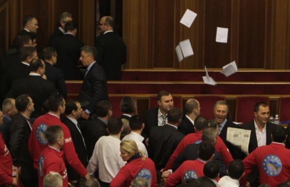 Азаров та міністри піднімаються з місць. "Ударівка" Ірина Геращенко кидає в них аркуші. Так само роблять ще кілька опозиціонерів.
