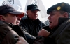 Вхід до будівлі перекрили хлопці спортивної статури з парасольками, де зображена символіка Партії регіонів, і спецпідрозділ міліції.