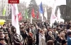 Близько 100 представників "Батьківщини", УДАРу і "Свободи" пікетують облраду. Мітингувальники тримають партійні прапори і скандують "Банду геть!", "Тулуба - геть!".