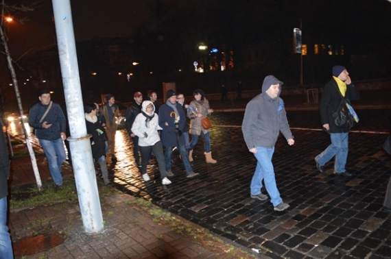 О 23:15 частина учасників збираються йти на Банкову вулицю до Адміністрації президента. Натовп ділиться на частини – одній йдуть, інші залишаються на майдані. На чолі колони Арсеній Яценюк в оточенні нардепів однопартійців, поруч кілька депутатів-"свободівців". Віталій Кличкко залишається на майдані.