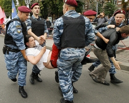 "Вони просто обезбашені. Колона хотіла мирно пройти, а вони просто вибірково повисмикували людей з натовпу та понесли у бік Бесарабської площі. Тому зараз ми вимагаємо їх звільнення", - сказав Чесноков.