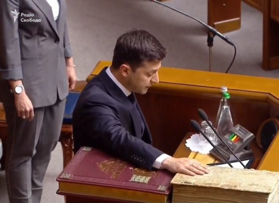 Присягу Зеленський складав на Пересопницькому Євангеліє та Конституції.