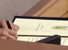 Глава ЦВК Тетяна Сліпачук вручила Зеленському посвідчення президента.