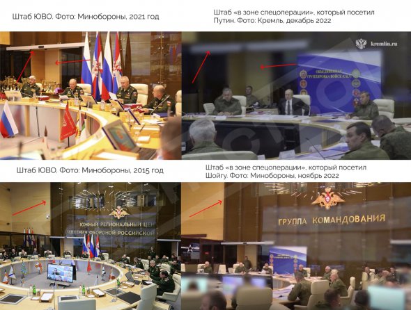 Зіставили інтер'єри штабу на відео з Путіним і на фотографіях з більш ранніх заходів у цьому приміщенні.
