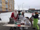 Працівники тамтешнього ресторану "Вареник" у костюмах Діда мороза та Снігурки продавали глінтвейн - 40 грн, шашлик - 45 грн за 100 г та фруктовий чай - 10 грн.