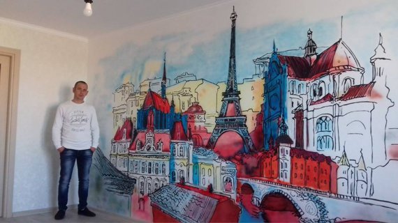 – Можу виконати роботу під замовлення. Нещодавно знайомому малював казковий Париж у його новобудові. На стінах у клубі "Україна" в Немирові теж моя робота. Стіни для роботи мають бути прошпакльовані чистовою шпаклівкою та прогрунтовані. Взагалі ціна роботи різна і залежить від кількості кольорів та складності. Якщо це чорно-білий малюнок, то від 200 гривень за квадратний метр. Кольоровий – близько 2000 гривень, а намалювати фото – трохи дорожче, враховуючи його складність та кількість точних деталей. Небагато людей в нас готові платити такі гроші, тому замовляють нечасто.