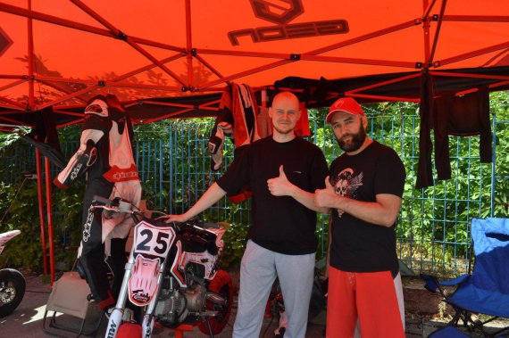 "Приїхав з Білорусі. Шосейними кільцевими мотогонками займаюсь третій рік. Поки що їжджу в слабкій групі. Тренуюсь у себе в Мінську, 2-3 рази на тиждень. Мої батьки не відвідують гонки з моєю участю, кажуть тільки, аби акуратно їздив. Один раз потрапляв у серйозну аварію на мотоциклі — його рознесло на шматки, а мені пощастило, лишився майже неушкодженим", - розповів пітбайкер Андрій Сулим. За свої 28 років в Україні вперше.