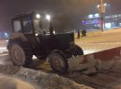 У районі центрального автовокзалу працює колона спецтехніки. Відкидає сніг на узбіччя. Зокрема на пішохідках.