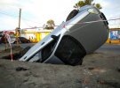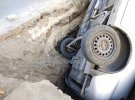 Минулого тижня у центрі Києва Chevrolet провалився під асфальт. Передні колеса авто провалилися на дорозі, де раніше була розрита яма. Її засипали щебенем. Машину витягали за допомогою пневмообладнання.