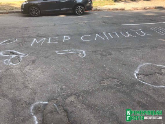 У Кременчуці Полтавської області активісти розмалювали дорогу. Білою фарбою обвели ями. Біля них написали питання до міської влади: "Мер сліпий?"