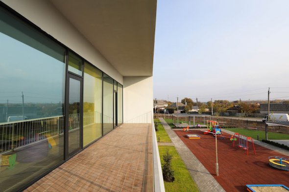 "Це міф, що будівля з великими вікнами не може бути теплою й енергоефективною. Таку архітектуру мають навіть будинки в країнах з більш "суворим", ніж наш, кліматом - в Швеції, Данії, Норвегії, - пояснив архітектор. - Головне - правильно спланувати будівництво. Фасад садка в Обухівці виходить на південь, а над вікнами є спеціальні навіси. Влітку, коли сонце "високе", будівля не перегрівається. І навпаки - "низьке" зимове сонце додатково нагріває приміщення. Це перший дитсадок України, побудований за такою технологією".