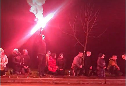 Пізно ввечері 11 березня в місті Червоноград Львівської області на колінах зустріли загиблого бійця полку "Азов" Юрія Луговського.