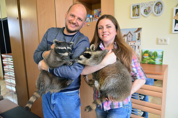 "Купували їх півторамісячними за гроші, які нам подарували на весілля. Назвали Сірко, Степашка, Лисичка, Мишка і Лялька. Тепер єнотам по десять місяців. Лялька вже вагітна", – розповідає Gazeta.ua Андрій Гервазюк.