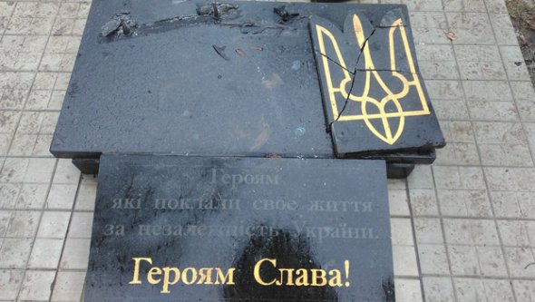 "Зловмисники повалили на землю дві плити із зображенням прапора України та словами гімну. А Герб України розбили і розкидали навколо", - йдеться в повідомленні.