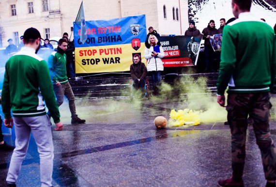 У Львові ветерани АТО вийшли на акцію протесту проти проведення Чемпіонату світу з футболу в Росії у 2018 році.