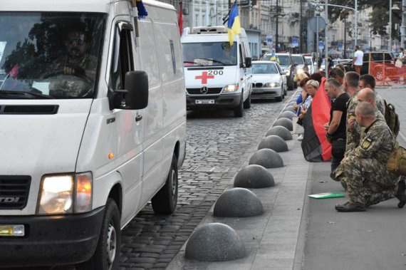 Сотні людей вийшли на вулиці Львова, аби віддати шану бійцю. Кортеж із загиблим зустрічали на колінах.
