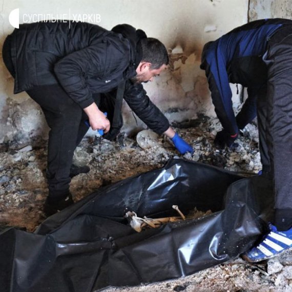 "Знайти останки вдалося з другої спроби, у чорний мішок збирають кістки. Допомагає сусід Михайло", - ідеться в повідомленні.