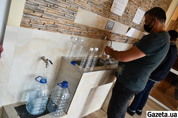- Тут набирають гідрокарбонатну натрієву воду для покращення функціонування кишково-шлункового тракту, - продовжує директор. - В народі її називають "Содова". Понижує кислотність. За призначенням лікаря переважно її п'ють тричі на день по 150 мілілітрів протягом двох-трьох тижнів. Зловживати не радять. Тому на сесії міськради обмежили норму води на одного – 750 мілілітрів. Звичайно, не забираємо воду, хто більше візьме.