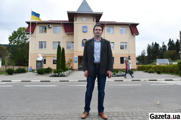 Центральна вулиця селища, де прощаємося з киянкою, має назву Золота Баня. Бере початок з автостанції. Посередині півкілометрової вулиці розташована селищна рада з облаштованим сквером навпроти і недавно відремонтованим стадіоном. З будь-якої точки вулиці видно білосніжний храм Святих апостолів Петра і Павла УГКЦ із п'ятьма банями, вкритими позолоченою бляхою та дзвіницею з п'ятьма дзвонами. Заходимо до селищної ради. Будівля має вигляд недавно відреставрованої – зі свіжою побілкою персикового відтінку. По центру розташований герб міста – жовтий ведмідь на тлі зелених карпатських ялинок. На першому поверсі майстри ще штукатурять кабінети. Чути, як свердлять перфоратором. На сходах зустрічаємо заступника селищного голови Романа Майстрика. Чиновник років 30, у піджаку та джинсах.