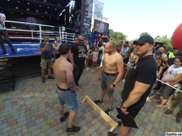 Після змагань за перетягування палки ведучий та стронгмен Василь Вірастюк спішить на обід. Дорогою люди підбігають сфотографуватися. Чоловік стає на кілька секунд і йде далі. Каже, що стає злим, коли довго не їсть.