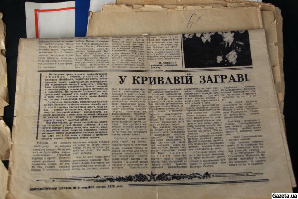 Галина Федорівна показує пожовклі вирізки зі старих радянських газет. В одній статті розповідається про урочисте відкриття меморіалу у селі Великі Липняги 23 вересня 1977 року. А в іншій — про Великолипнягівську трагедію. Наводиться текст з обвинувального акту, складеного і підписаного комісією сільської ради 24 вересня 1943 року.