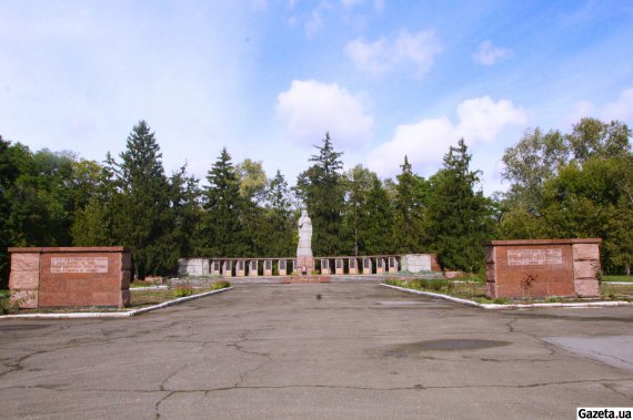 За тиждень після дня пам'яті тут теж немає квітів — лише один пластиковий вінок біля пам'ятника. Торішній валяється позаду меморіалу — вочевидь, їх просто замінили, забувши прибрати. Давно не горить "вічний вогонь".