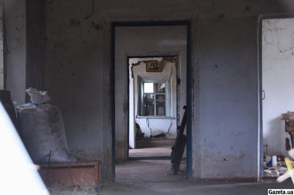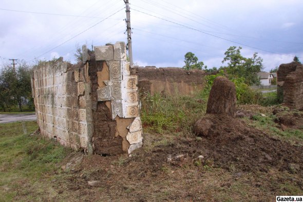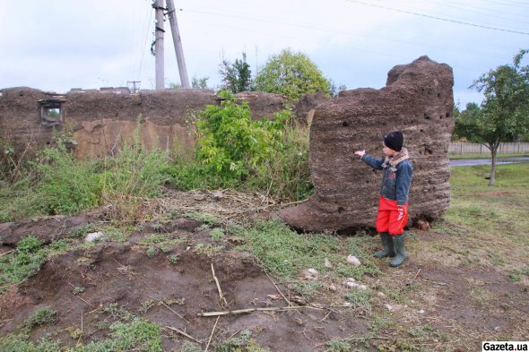 Одна з розвалин височіє на центральній вулиці неподалік меморіалу. Голі стіни - на дах навіть натяку немає. Глина не просто обвалилася. Вона ніби стікла та розтанула.
