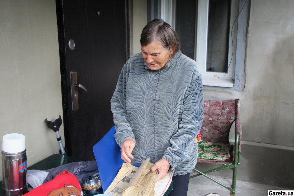 - Там треба було давно міняти очерет. Та ми не вміємо, а попросити нікого — вже ніхто такого не робить. Мій чоловік ремонтує, як може — сіном вкриває. Там у нас літня кухня, - зустрічає мене у дворі міцна жінка в фартусі поверх бордового вишитого светра. Коротким рухом поправляє під підборіддям вузол зеленої з бордовими квітами хустки. Представляється Тетяною Григорівною.