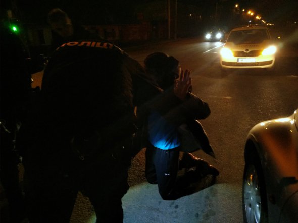 — Стояти! Повернутися! Руку повільно дістати з кишені! — поліцейський швидко і впевнено виходить із переднього пасажирського місця.
