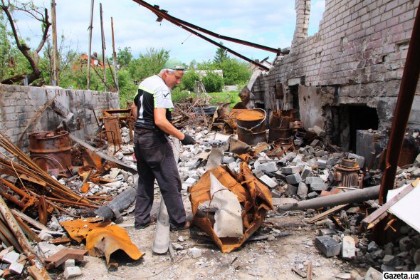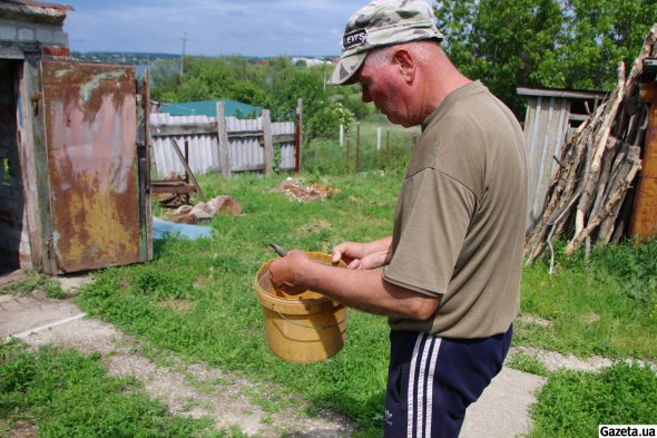 – Бомба или мина на крышу прилетела. Было около четырёх вечера. Я был на улице, около курей. Рядом бахнуло. Глянул – пыль столбом. Упало еще у соседей на огород. Мой дом целый, только окна и крышу (пошкодило. – Gazeta.ua). Но крышу мы уже поремонтировали, – розповідає 47-річний Олег Гуслєв.