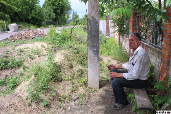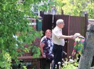 На подвір'ї зустрічаємо високого сивого чоловіка у спортивній футболці та робочих брюках. Питаємо, чий це одяг валяється.