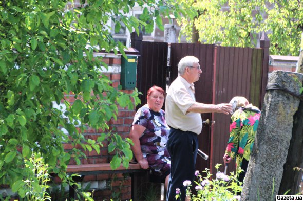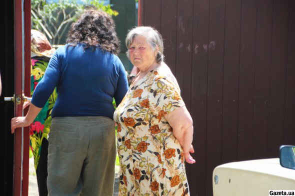 З-за сірих металевих воріт навпроти виглядає на вулицю 73-річна Валентина із сивим волоссям. На комірці її насичено-рожевої блузки з довгим рукавом заколота брошка у вигляді квітки зі стразами, взута в білі закриті босоніжки. На шиї – срібний хрестик, у вухах – золоті сережки із синтетичними рубінами.