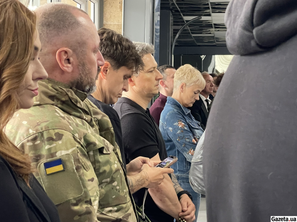 Попрощатися з бійцем прийшли колеги та друзі. Серед них Віталій Козловський, Олександр Педан, Марічка Падалко, Костянтин Грубич, Андрій Чивурін, Андрій Джеджула, Анатолій Анатоліч та інші. Усі уважно стежать за процесією, а згодом - стають у чергу на вхід до зали, де вже розпочалася церемонія прощання.