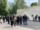 Перед входом виставили обмежувальні стовпчики, за якими вже вишикувалися військові у пікселі й цивільні - у чорному траурному вбранні. Усі мовчки стежать за катафалком, що вже підʼїхав на подвірʼя.
