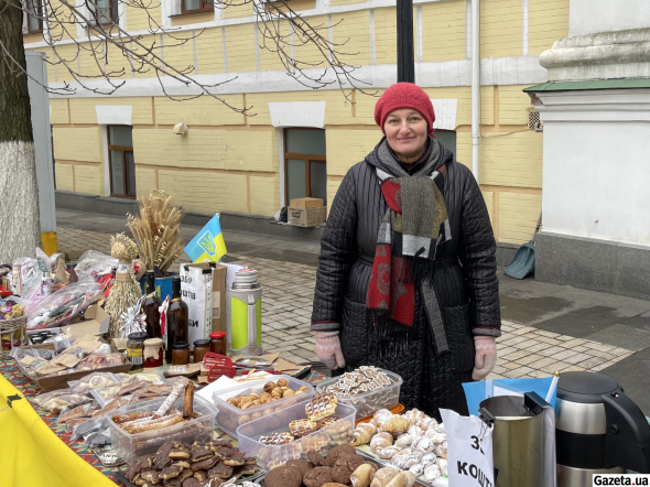 Останнім часом українці стали менше донатити, каже жінка. Випікають смаколики за свої кошти. Усе, що зібрали, віддають на потреби фронту.