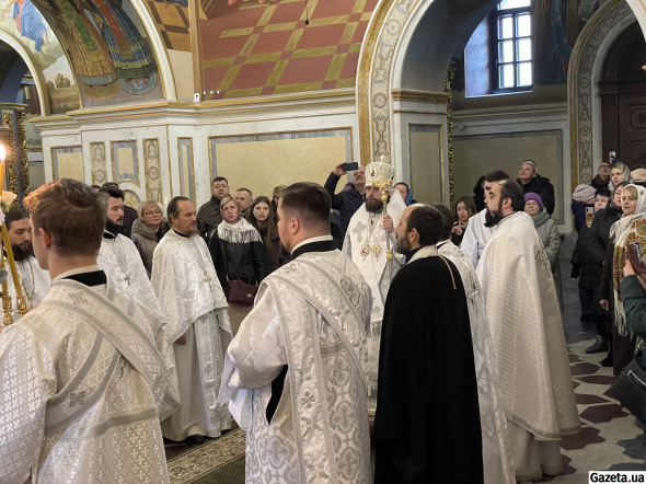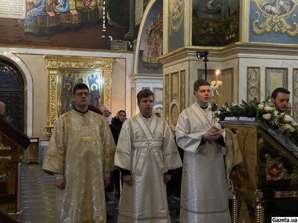 На амвоні вже стоять священники - у біло-срібному облаченні. Богослужіння з нагоди Різдва очолює предстоятель Православної церкви України митрополит Епіфаній. Починається літургія. Перші слова молитви лунають гучно і урочисто. Обабіч вівтаря на підвищеннях стоять оператори - службу транслюють наживо.