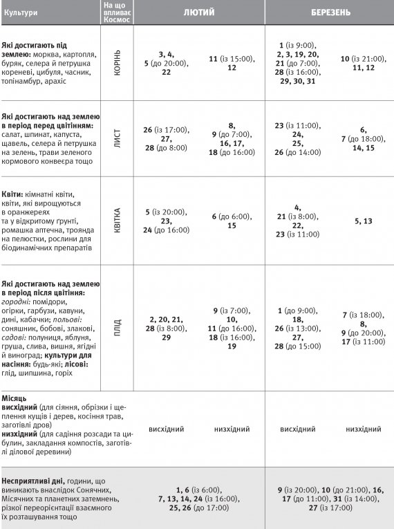 Посівний календар складений за правилами біодинаміки. Застосовуючи його, можна отримати добрий урожай, ефективніше спланувати сезонні роботи.