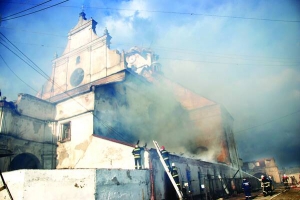 Рятувальники гасять виправну колонію №47 за селищем Жвирка Сокальського району Львівської області. Вона облаштована у приміщенні колишнього римо-католицького монастиря отців-бернардинів