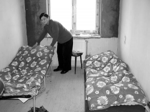 — Спочатку мерія виділяла кошти, — продовжує хазяйка. — Відновили стіни, дах, опалення, поклали підлогу. І все. Коли ми вернулися, у туалеті не було навіть унітаза. Позичили розкладачку, купили матрац. А за гроші, якими сину допомогли колеги, купили плиту, стіл, дві каструлі, подушки й одіяла. І що тепер? У мене пенсія тисячу гривень, синова зарплата — 1300. За ці гроші ми не можемо зробити ремонт.
