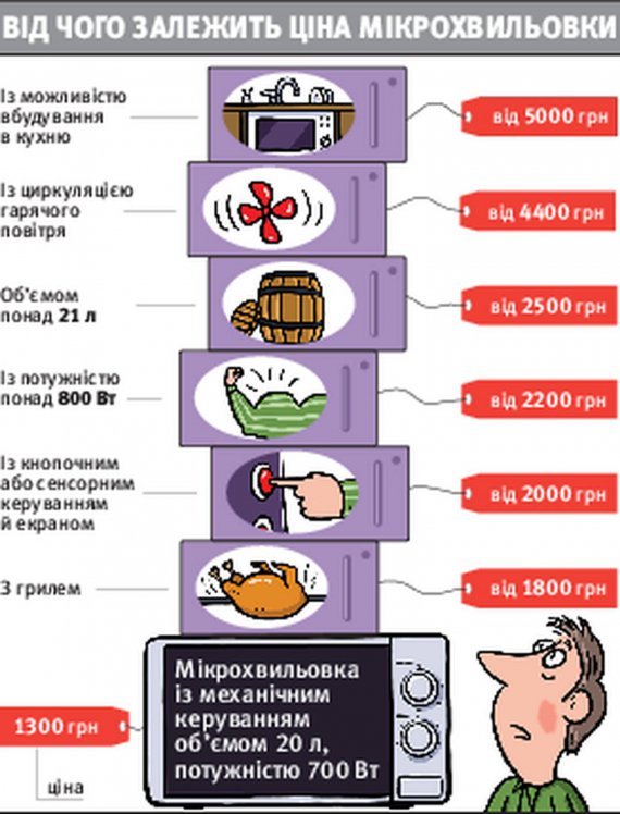 Мікрохвильові печі коштують від 1,3 до 10 тис. грн. На відміну від електричних і газових духовок, вони підігрівають їжу завдяки електромагнітним хвилям, що проходять крізь їжу і підвищують її температуру.