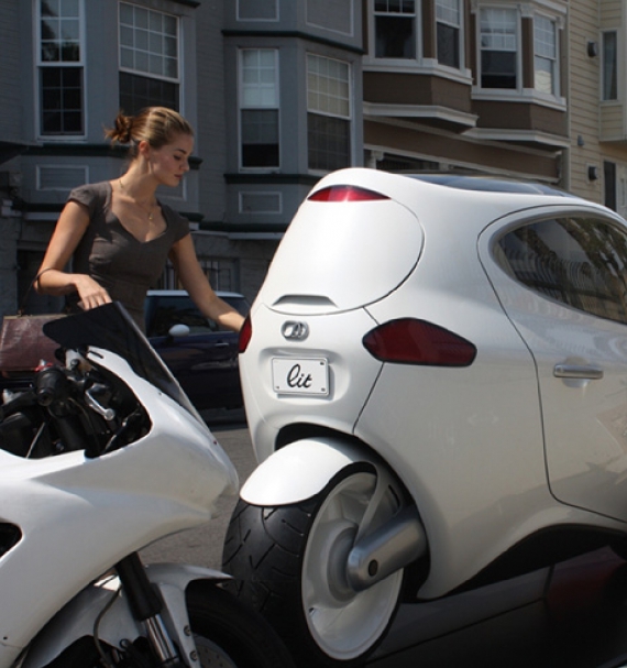 Американська компанія Lit Motors розробила двомісний електричний мотоцикл із закритим кузовом C-1. Правда поки він існує лише у вигляді повнорозмірного макета.