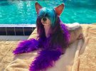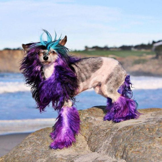 61-річна Рена Кревале з Кармела штат Каліфорнія США, пофарбувала свою собаку Шебу в фіолетовий колір. Вона переконує, що просто задовольнила смак тварини.