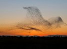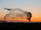Фотограф Деніел Бібер із Хілцінгена, Німеччина, "зловив" зграю шпаків, які почали вихляти та крутитися у повітрі. Це сталось, швидше за все, через якогось хижака, - яструба чи сокола. Що цікаво, - шпаки злетілись у величезну фігуру птаха, наче показуючи хижаку, що вони більші і сильніші.