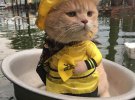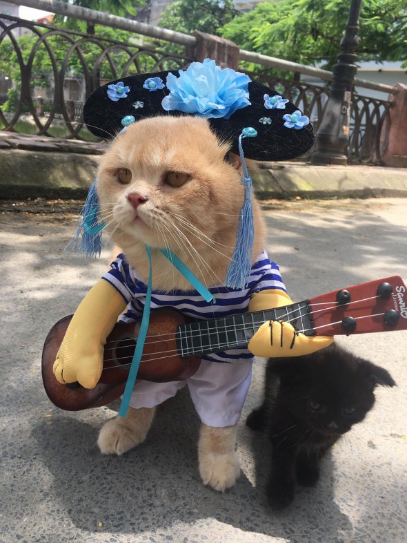 Кіт по кличці "Дог" із В'єтнаму підкорює мережу своїми кумедними нарядами. Його власник 24-річний Ле Куок Фонг вигадав для свого улюбленця образ продавця на рибному ринку і фотографує його.