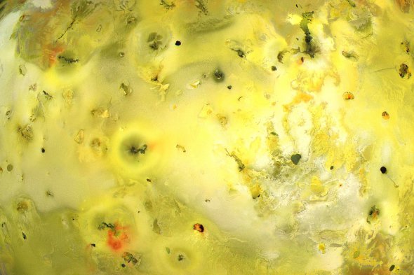 Супутник Юпітера найбільш геологічно активне тіло в Сонячній системі. Гравітація планети-гіганта і інших його супутників в буквальному сенсі роздирає поверхню Іо на частини. З тріщин в корі вириваються стовпи сірки і її діоксиду висотою до 500 км, які і забарвлюють Іо в жовтий колір.