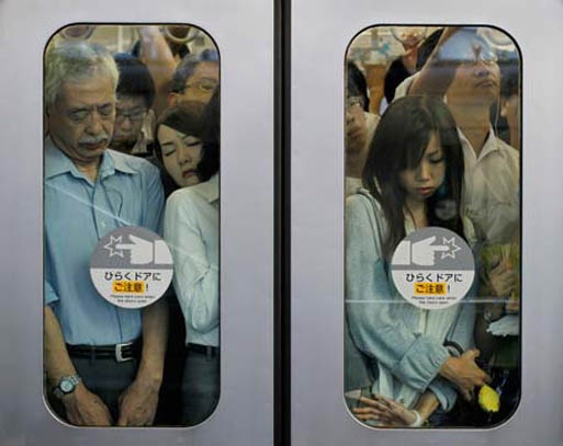 Німецький фотохудожник Майкл Вулф (Michael Wolf), потрапивши до Японії, був вражений жахливою тиснявою у тутешньому метро. У годину пік в Токіо їхати на метро, здається, просто неможливо. Але всім треба встигнути на роботу вчасно, тому токійці демонструють справжні дива гнучкості і терплячості. Все це зафіксував у своїх фотороботах захоплений Вулф.