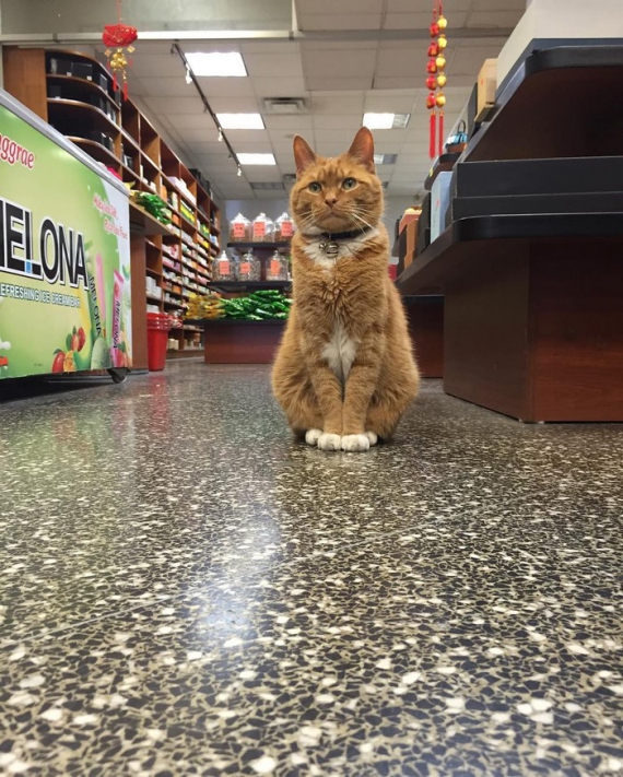 "У магазині він любить сидіти біля вхідних дверей, і вітати покупців. Також серед його обов'язків — точити кігті у кутку, виглядати з вікна та перевіряти атмосферу навколо", - розповідає продавчиня Енні Лао.