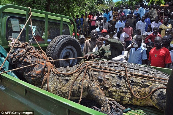 У селі Какіра, біля озера Вікторія, в Уганді, спіймали крокодила завдовжки п'ять з половиною метрів вагою близько тонни. За підозрою місцевих, він вбив шістьох їхніх сусідів.