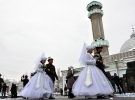 У центральній мечеті столиці Киргизстану, міста Бішкека, вчора пройшла весільна церемонія одночасно для 35 пар. Така традиція є у мусульман багатьох країн світу.