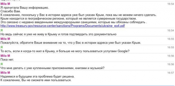 У прес-службі Google коротко відповіли: "Нещодавно були введені санкції щодо Криму з боку США і ЄС. Будучи американською компанією, ми зобов'язані їх виконувати". Тим не менш, є надія, що компанія вирішить дану проблему, і піде назустріч тим користувачам, які покинули територію Криму.